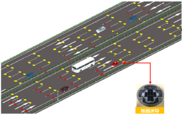 系統(tǒng)通過在車道兩側安裝激光測距車檢器,準確感知車輛所在車道,再通過在路面預埋的誘導燈,對行駛車輛進行車道級安全誘導行駛。路面的數(shù)百個誘導燈,可在車輛后方一定距離以紅燈顯示警示區(qū)域,形成車輛行駛拖移軌跡,提醒后車保持距離。霧天行車誘導系統(tǒng)可實現(xiàn)提高霧天路段通行效率、降低事故發(fā)生率的應用效果。
